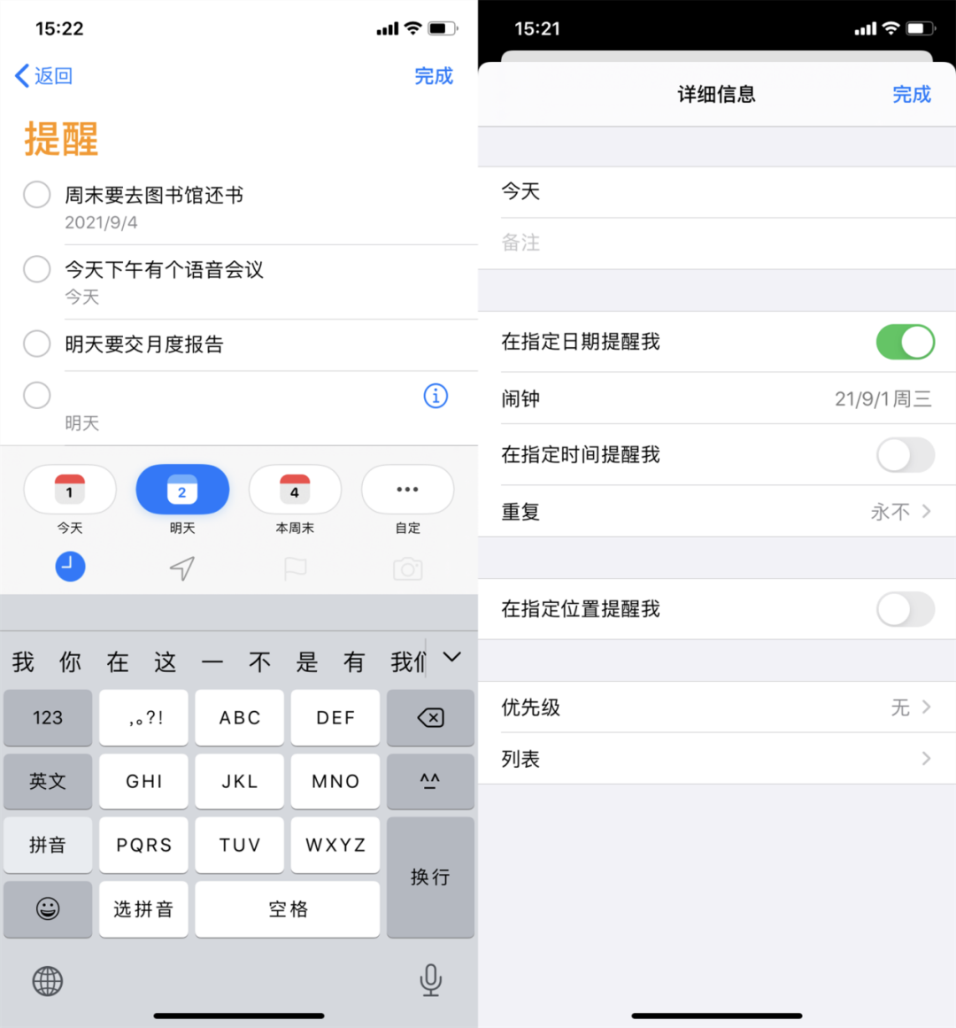 当你担心忘记重要的事情时,最好在手机上设置提醒。内置的[提醒]可以提醒你在特定的时间和地点完成一些事情,比如每天要做什么,并记下来