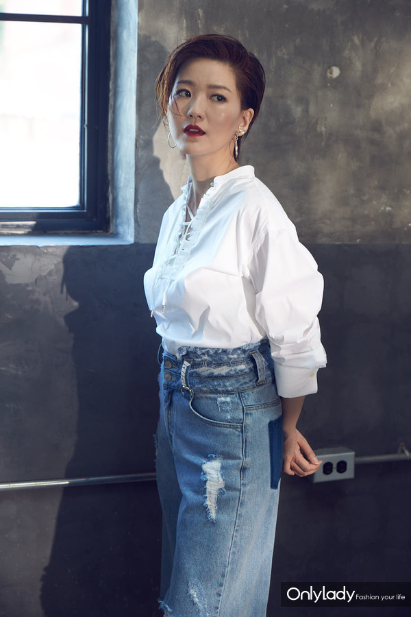 白色衬衫塞进复古牛仔阔腿裤。高腰设计延长了总人口比例。耳环与阔腿裤腰间的铁环相呼应,打造干练大方的造型!【大咖啡来种草第8卷蔡春佳穿阔腿裤的正确开启方法】( https://p26.toutiaoimg.com/origin/244e00061aa9116e1e8b?from=pc)! 【大咖啡来种草
