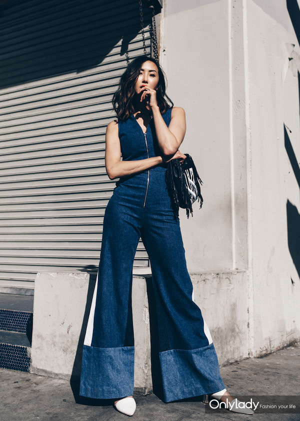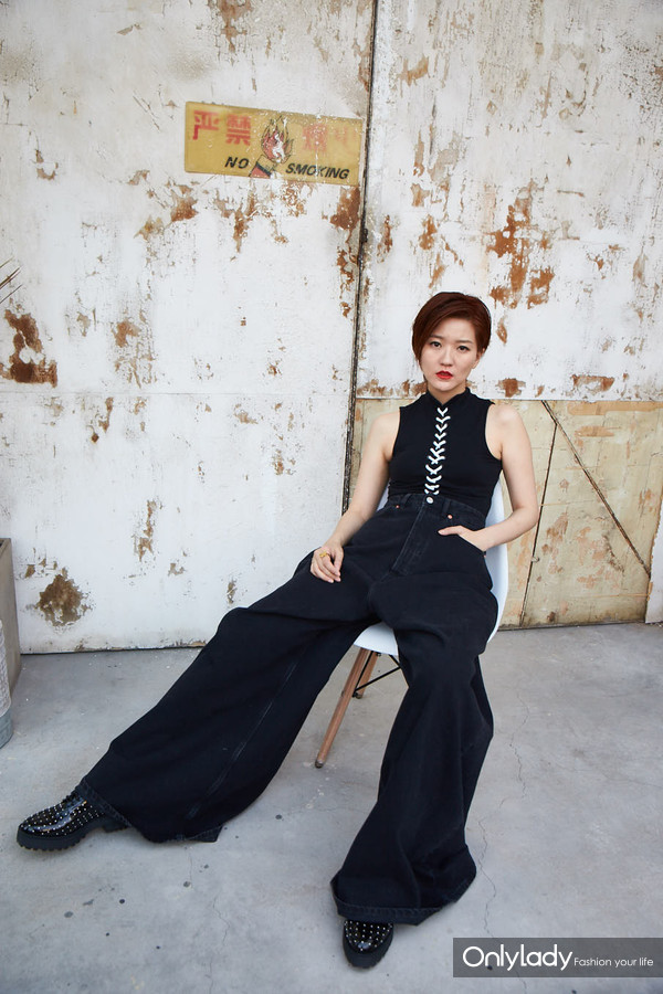 牛仔阔腿裤给人复古的感觉,但与牛仔夹克搭配时,会与材质发生碰撞。整体外观呈现简洁大方的视觉效果