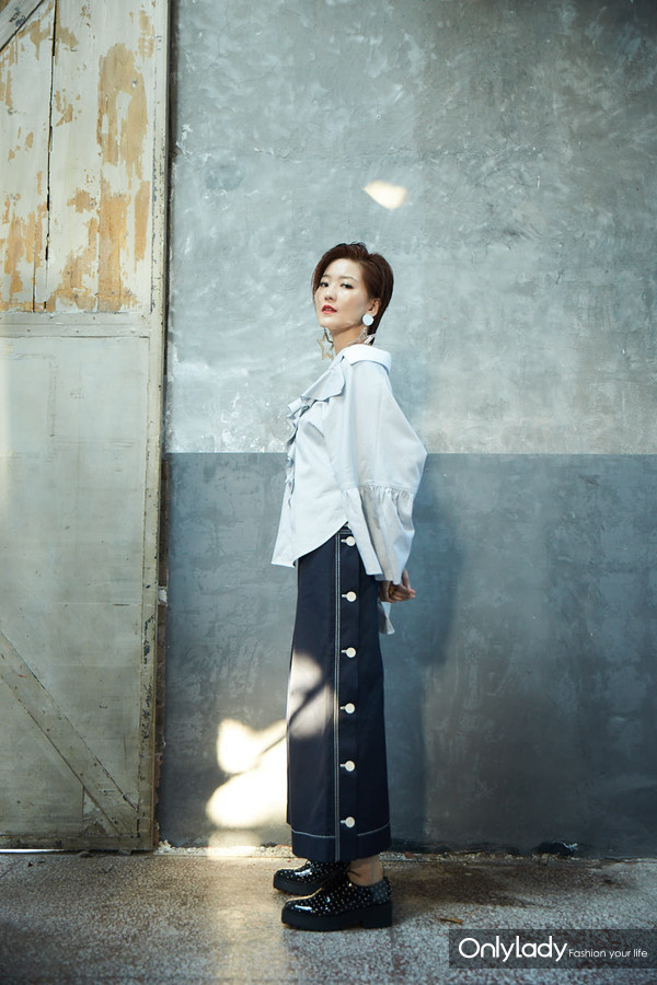 **Look3荷叶衬衫+短款阔腿裤 **